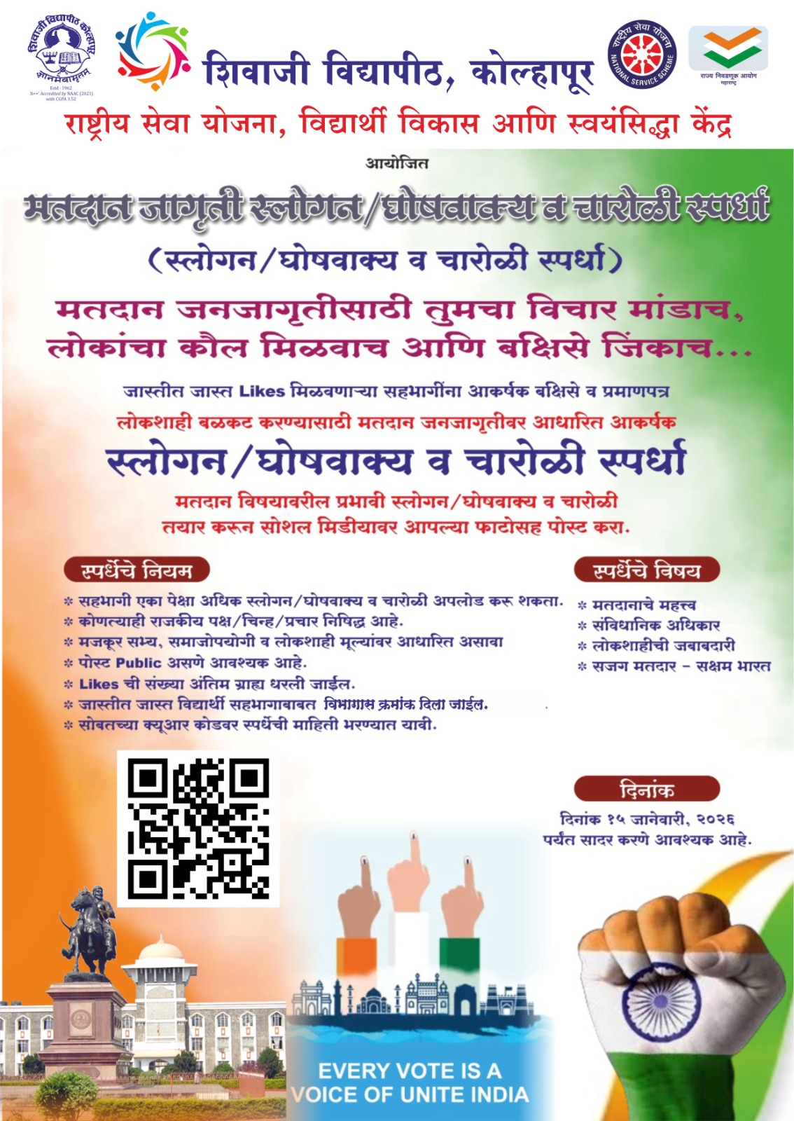 ¤ रील मेकिंग स्पर्धा ¤ मतदान जागृती सेल्फी स्पर्धा ¤ स्लोगन/घोषवाक्य व चारोळी स्पर्धा