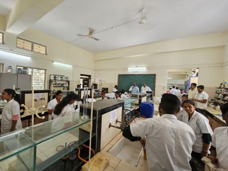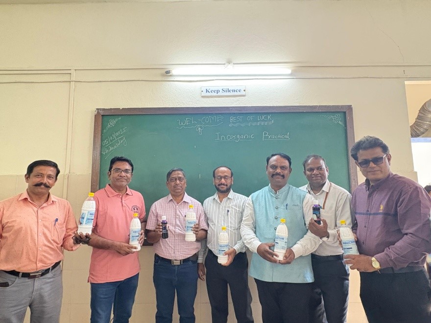 At 12:30 p.m., the practical session of the workshop commenced. Around **50 students** participated in the hands-on session. Dr. K.V. Gaikwad led the session, demonstrating the preparation of various household chemicals, including: