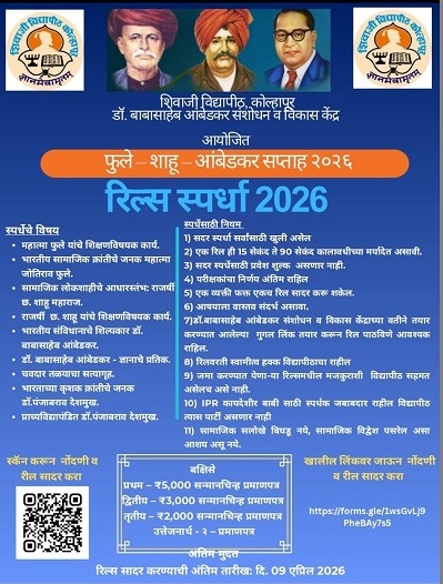 शिवाजी विध्यापीठाच्या डॉ. बाबासाहेब आंबेडकर संशोधन व विकास केंद्राच्या वतीने Reals स्पर्धेचे आयोजन |